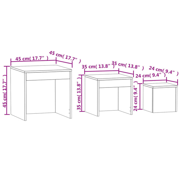 Sivupöytiä voidaan käyttää olohuoneessa juomiesi tai muiden tarpeellisten tavaroiden pitämiseen kätesi ulottuvilla. Voit myös viedä yhden niistä makuuhuoneeseen käyttääksesi sitä ainutlaatuisena yöpöytänä. Eri kokojen ansioista, tämä sarjapöytä vastaa moniin tarpeisiisi sekä tarjoaa lisätilaa ja helppoa säilytystilaa, kun pienemmät pöydät piilotetaan isoimman pöydän alle.