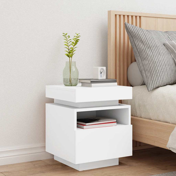 Valkoinen yöpöytä led-valoilla 40x39x48,5cm