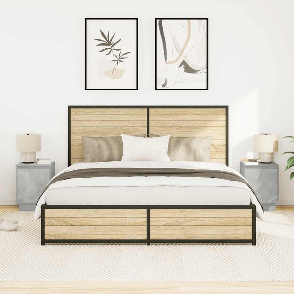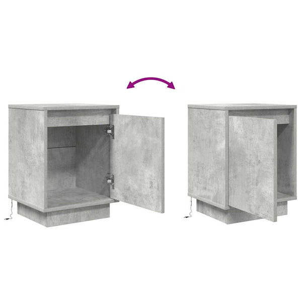 Betoninharmaa yöpöytäkaapit led-valoilla 38x34x50cm 2 kpl