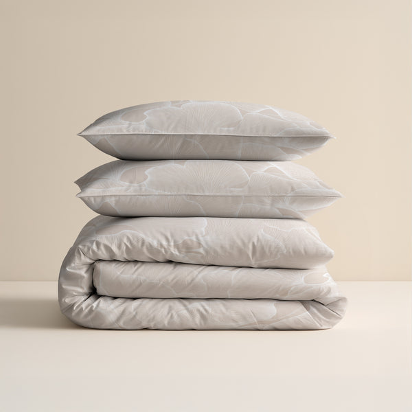 Vuodevaatteet.fi: Pussilakanasetti Ginkgo Whisper Sand/Harmaa – Ylellisyyttä Jokaiseen Yöhön