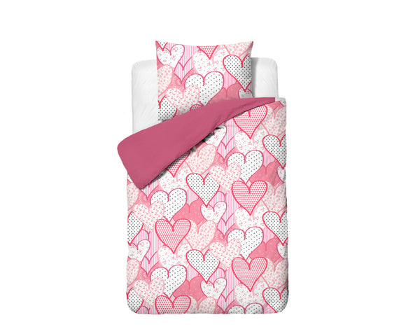 Lasten Pussilakanasetti Hearts love Vaaleanpunainen 140 x 200/220 - Yöunien Laatuun Panostettu Valinta