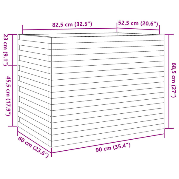Valkoinen puutarhakukkalaatikko 90x60x68,5cm mänty