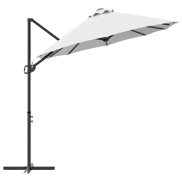 - Ominaisuudet / Toiminta / Suunnittelu: Tämä varjo yhdistää modernin tyylin ja käytännöllisyyden. Se on tehty kestämään ulkona, ja UV- ja vedenkestävät materiaalit lisäävät sen elinikää. Kannattajasuunnittelu mahdollistaa maksimaalisen varjon ilman häiritsevää tolppaa, jättäen tilaa muille.
