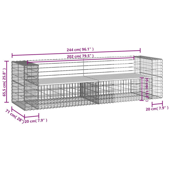 - Tukeva ja vakaa jalusta: Ulkopenkin alaosana toimii galvanoidusta teräksestä valmistettu kivikori, joka on suunniteltu täytettäväksi kivillä tai soralla lisäkauneuden luomiseksi. Teräsverkko on hitsattu poikki- ja pituussuuntaisilla rautalangoilla jokaisessa risteyskohdassa ylimääräisen vakauden takaamiseksi.