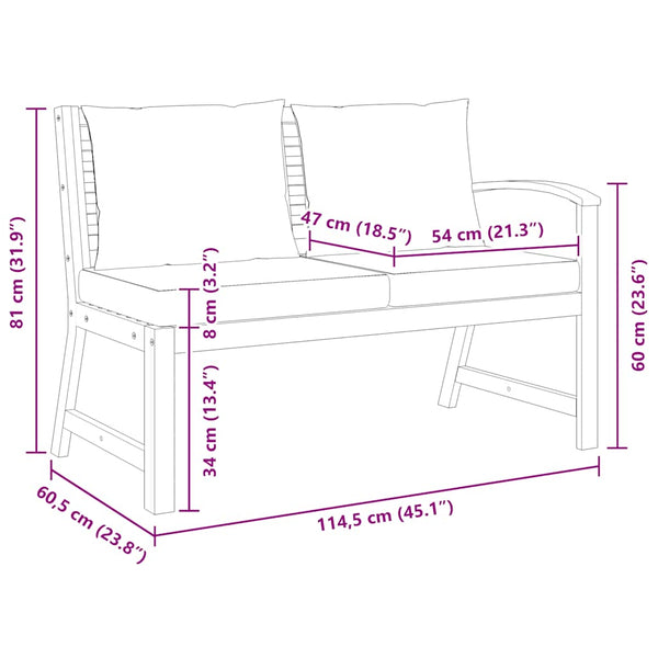 Kermanvärinen puutarhapenkki 114,5cm tyyny akasiapuu