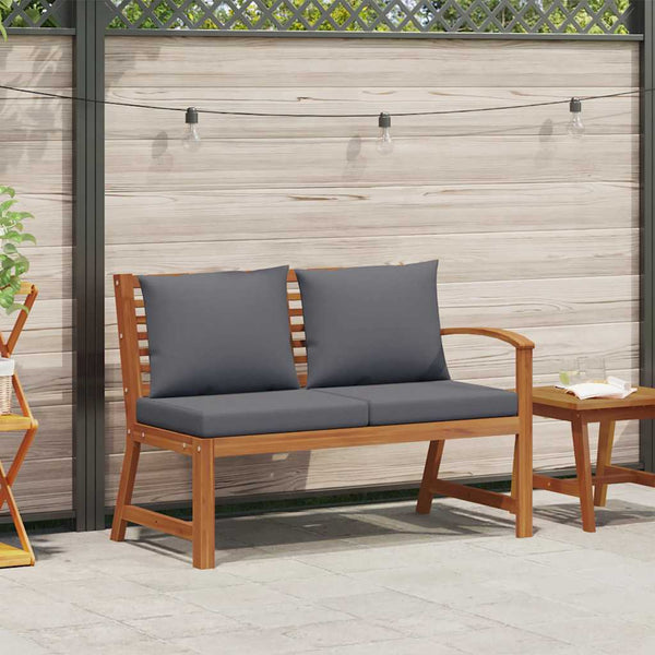 Tummanharmaa puutarhapenkki 114,5cm tyyny akasiapuu