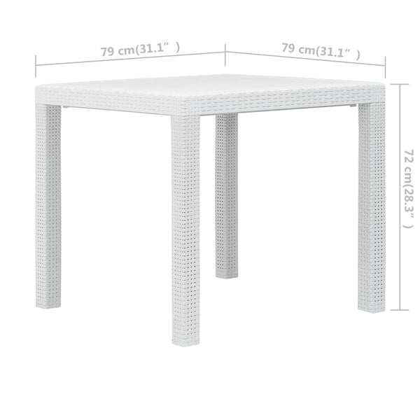 Valkoinen puutarhapöytä rottinkityylinen muovi 79x79x72cm
