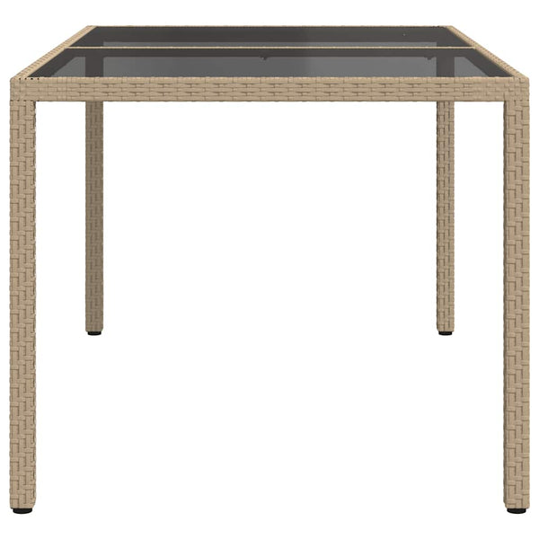 Beige puutarhapöytä 150x90x75cm karkaistu lasi ja polyrottinki