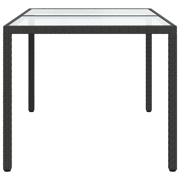 Musta puutarhapöytä 150x90x75cm karkaistu lasi ja polyrottinki