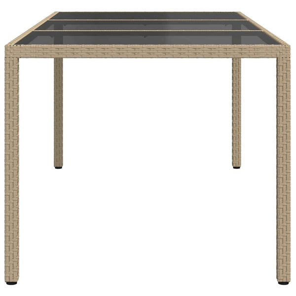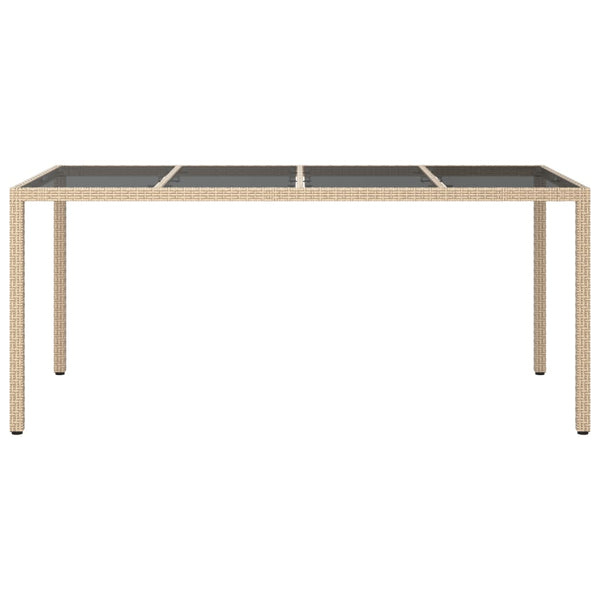 Beige puutarhapöytä 190x90x75cm karkaistu lasi ja polyrottinki