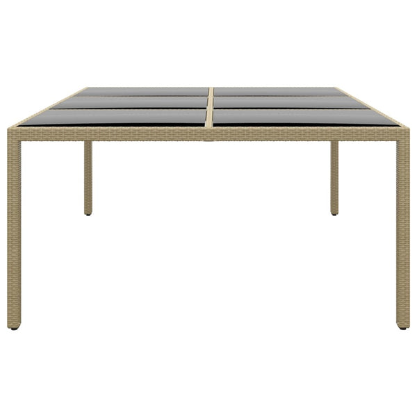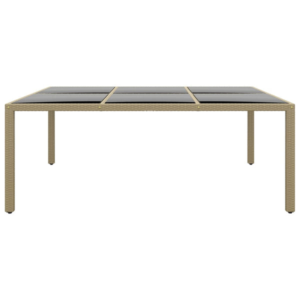 Beige puutarhapöytä 200x150x75cm karkaistu lasi/polyrottinki
