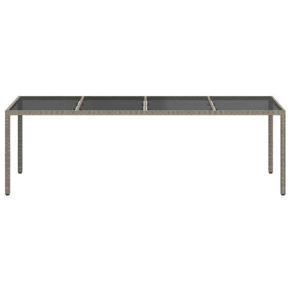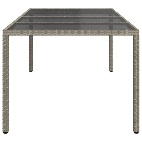 Harmaa puutarhapöytä 250x100x75cm karkaistu lasi ja polyrottinki
