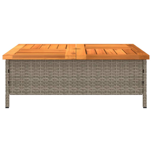 Harmaa puutarhapöytä 70x70x25cm rottinki ja akasiapuu