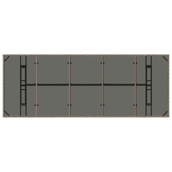 Harmaa puutarhapöytä 240x90x75cm lasipöytälevy polyrottinki