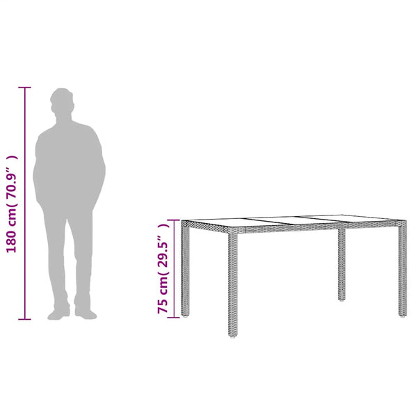 Ruskea puutarhapöytä 150x90x75cm polyrottinki