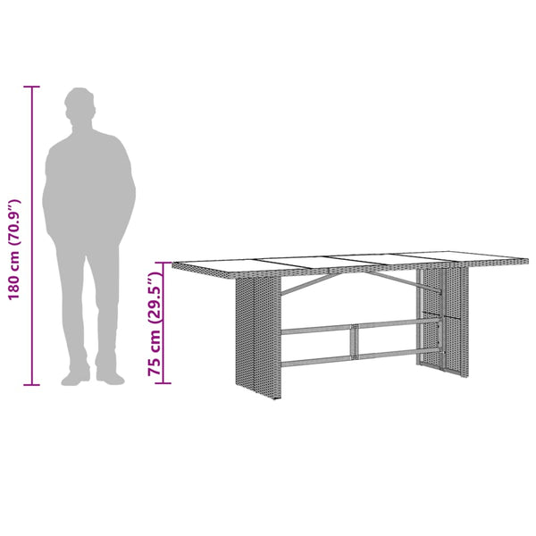Ruskea puutarhapöytä 190x80x75cm polyrottinki