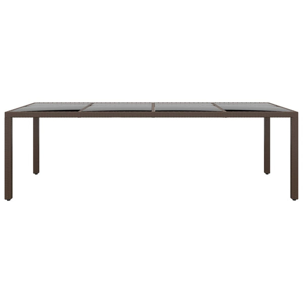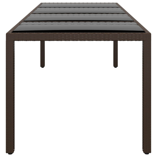 Ruskea puutarhapöytä lasipöytälevyllä, polyrottinki