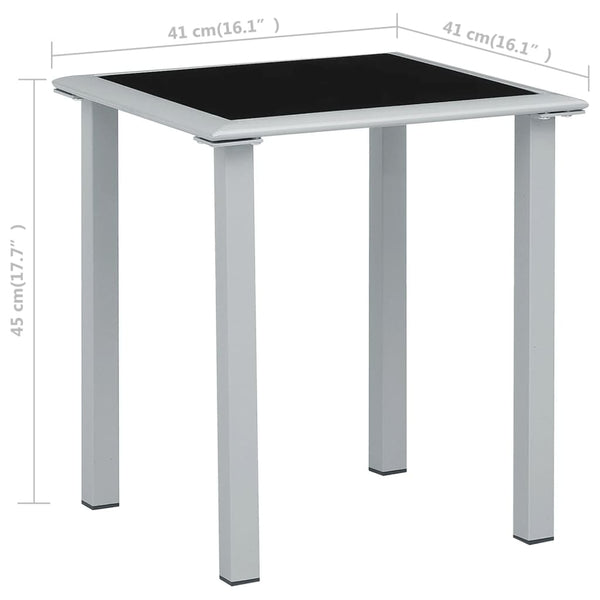 Musta ja hopea puutarhapöytä 41x41x45cm teräs ja lasi