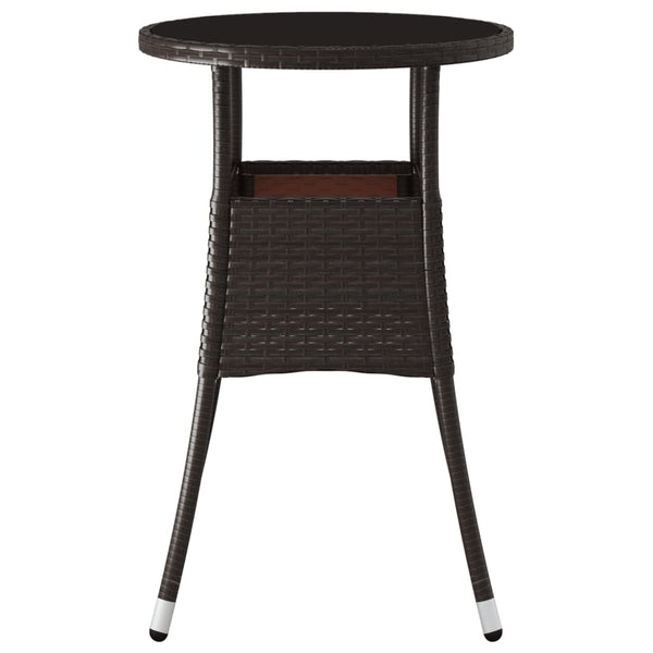 Ruskea puutarhapöytä Ø60x75cm karkaistu lasi ja polyrottinki
