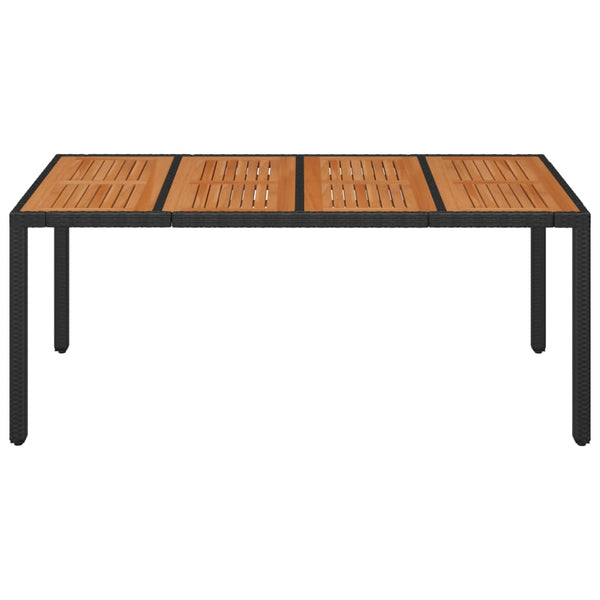 Musta puutarhapöytä 190x90x75cm puulevyllä polyrottinki
