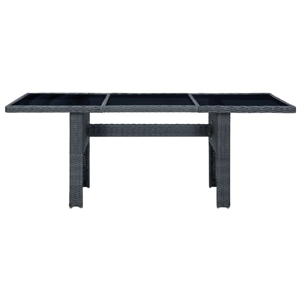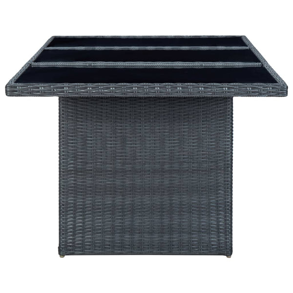 Tummanharmaa puutarhapöytä polyrottinki ja karkaistu lasi