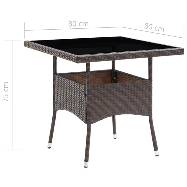 Ruskea puutarharuokailuryhmä 3-osainen polyrottinki ja lasi