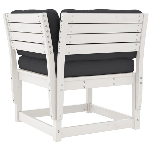 Valkoinen puutarhasohvan kulmapala tyynyillä 73x73x78cm mänty