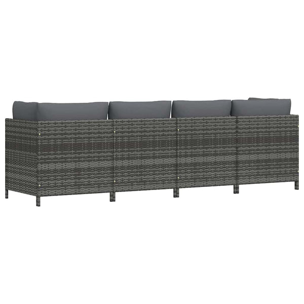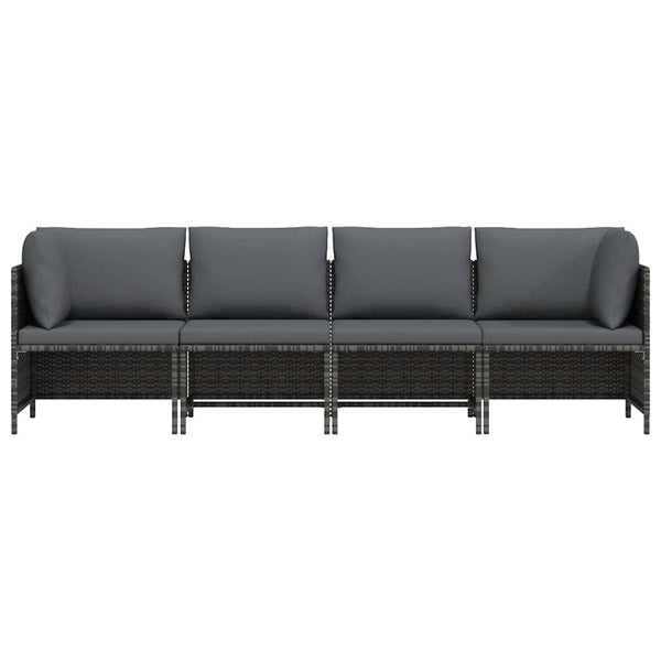 Harmaa puutarhasohva tyynyillä 4-istuttava, polyrottinki