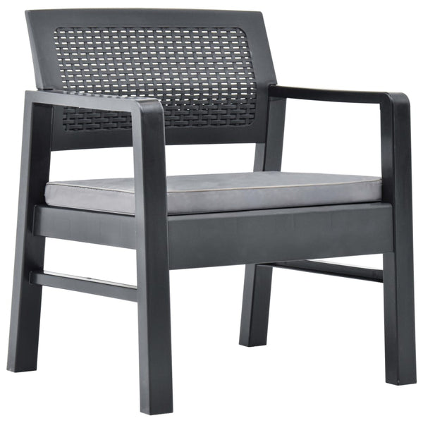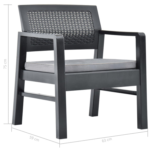 Harmaa puutarhatuolisarja 3-osainen, tyynyillä, muovi