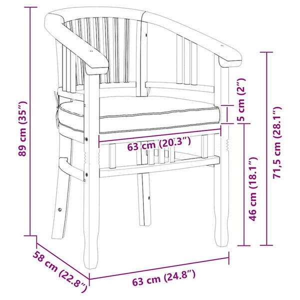 - Materiaalit: Valmistettu kokonaan kestävästä massiivisesta tiikistä, tämä puutarhatuoli takaa erinomaisen vakauden ja kestävyyden. Tiikin luonnollinen kestävyys suojaa sitä ankaralta sään vaikutuksilta, varmistaen, että tuoli säilyttää kauniin ulkonäkönsä. Tämä materiaali ei ainoastaan paranna kestävyyttä, vaan tuo myös ripauksen eleganssia ulkotilaasi.