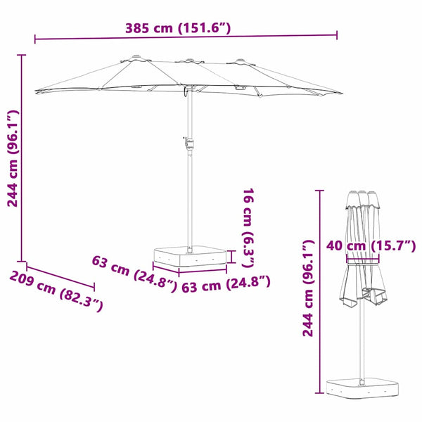 - Kaksipäinen sateenvarjo: Suunnittelu tarjoaa laajaa peittoa, tarjoten enemmän varjoa kuin tavallinen aurinkovarjo. Tämä ominaisuus on erityisen hyödyllinen suojaamisessa istuin- tai ruokailualueita aurinkoisina päivinä, varmistaen mukavuuden ja käytettävyyden kuumina kesäpäivinä.
