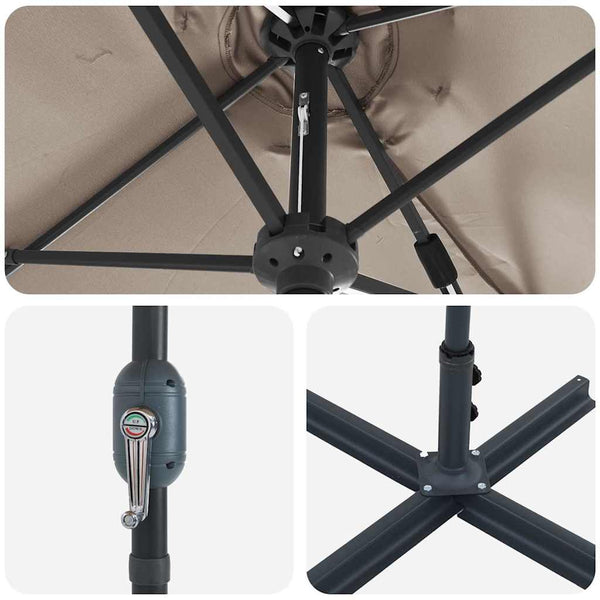 - Jauhemaalattu Teräskerams: Kestävä ja vakaa parasol, jonka ruosteenkestävä pinta varmistaa pitkän käyttöiän kaikissa sääolosuhteissa.