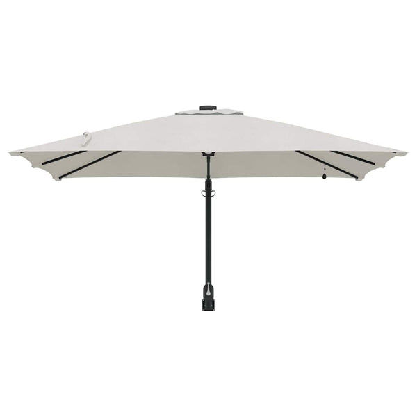 - LED-valaistus: Varjossa on LED-valoja, jotka on piilotettu kankaan alle – loistavaa tunnelmavalaistusta iltakäyttöön. Ne toimii aurinko- tai paristokäyttöisesti ilman sotkuisia kaapeleita.