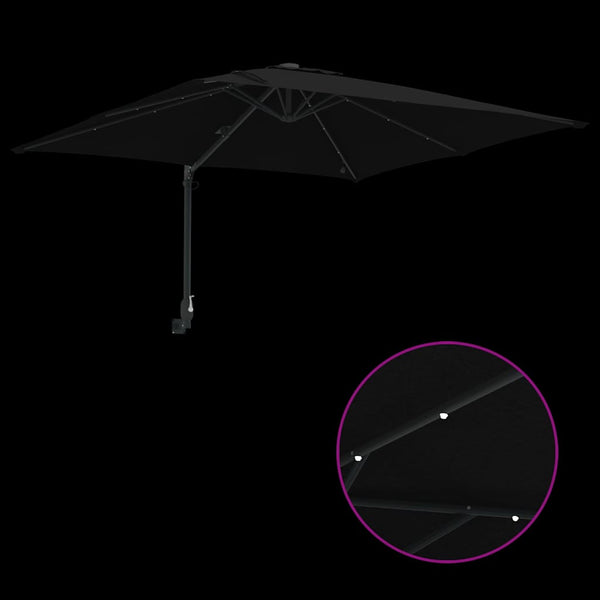 - LED-valaistus: Varjossa on LED-valoja, jotka on piilotettu kankaan alle – loistavaa tunnelmavalaistusta iltakäyttöön. Ne toimii aurinko- tai paristokäyttöisesti ilman sotkuisia kaapeleita.