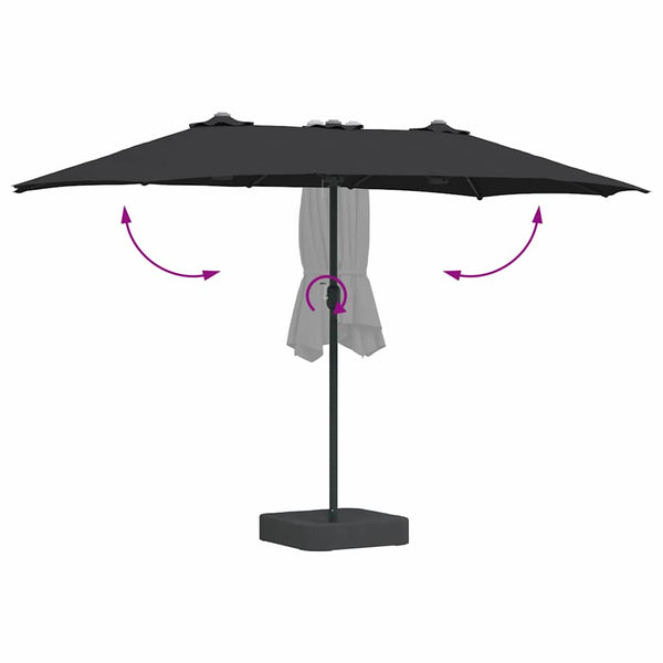 - Käytännöllinen valaistusratkaisu: Integroitu LED-valaistus varjon alla tarjoaa lempeää valaistusta iltatapahtumiin. Aurinko- tai paristokäyttöisten vaihtoehtojen avulla nämä valot parantavat yökäyttöä, luoden kodikkaan ja lämpimän tunnelman kaikille tilaisuuksille, laajentaen toiminnallisuutta päivänajan ulkopuolelle.