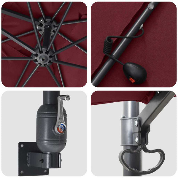Viininpunainen puutarhavarjo 248.5x247.5x160cm kangas
