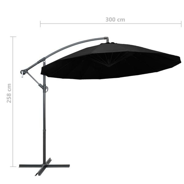 Musta riippuva päivänvarjo 3 m alumiinitanko