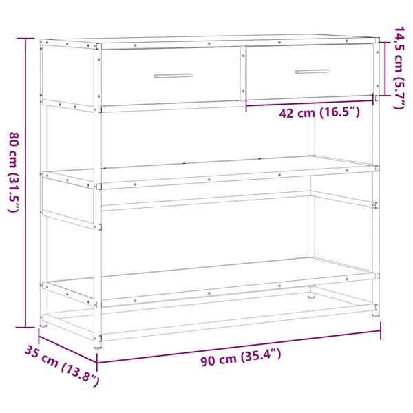 - Runsaasti säilytystilaa: Tässä eteisen pöydässä on laatikot ja hyllyt, jotka tarjoavat säilytystilaa, jotta aikakauslehdet, kirjat, kaukosäätimet ja muut pienet esineet ovat käden ulottuvilla.
