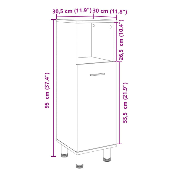 Sonoma-tammi kylpyhuoneen kaappi 30,5x30x95cm puinen