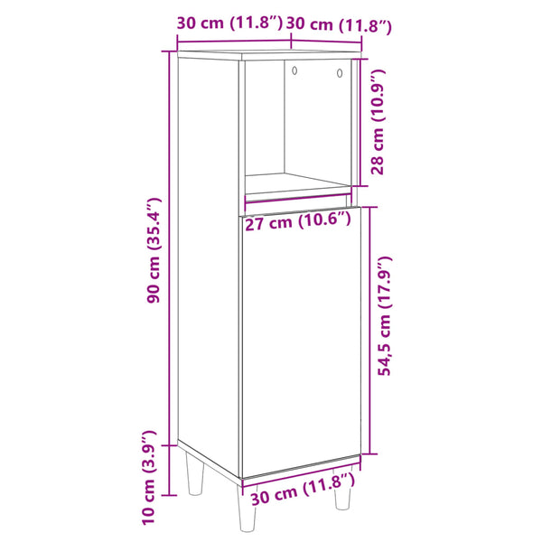 Sonoma-tammi kylpyhuoneen kaappi 30x30x100cm puinen