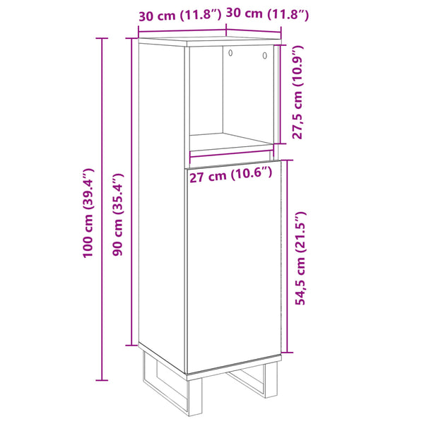 Sonoma-tammi kylpyhuoneen kaappi 30x30x100cm puinen