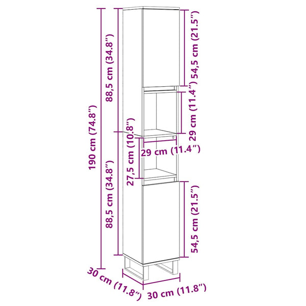 Sonoma-tammi kylpyhuoneen kaappi 30x30x190cm puinen