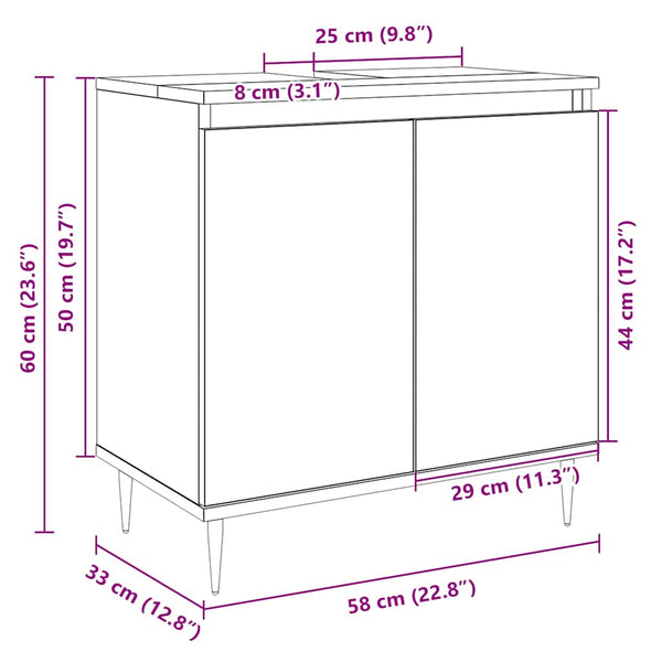 Sonoma-tammi kylpyhuoneen kaappi 58x33x60cm puinen