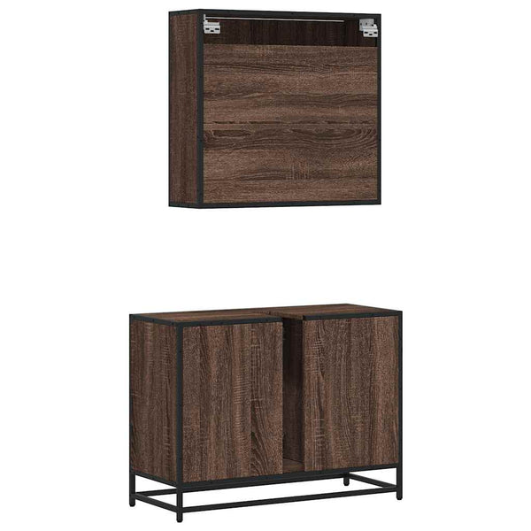 Ruskea kylpyhuoneen kalustesarja Vladulescu (2-osainen, tammi puinen)