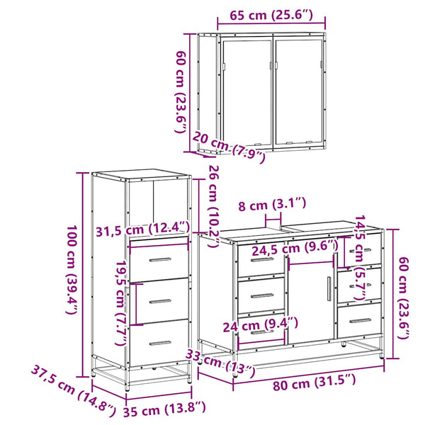 • Kylpyhuoneen kaapin mitat: 35 x 37,5 x 100 cm (L x S x K)