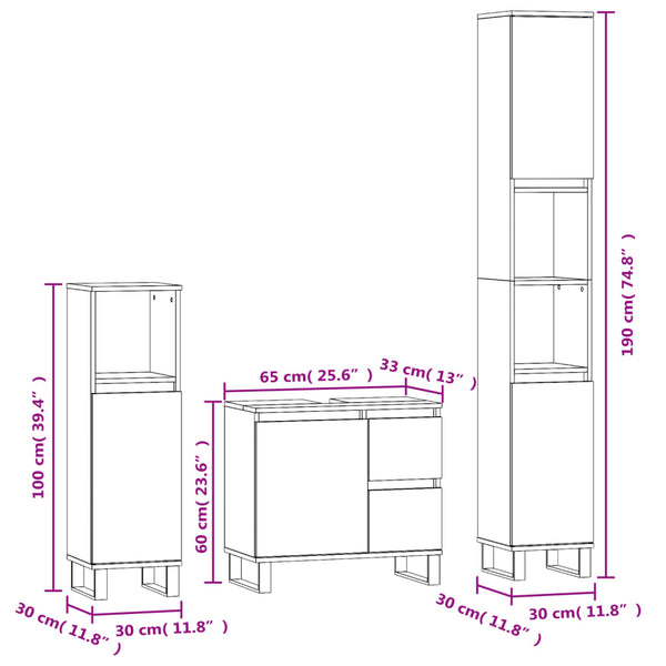 Kylpyhuoneen kalustesarja 3-osainen, savutammi puinen
