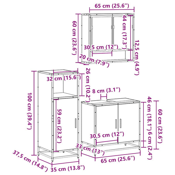Kylpyhuoneen kalustesarja 3-osainen savutammi puinen