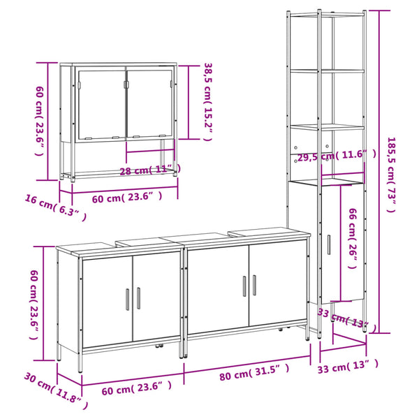 Ruskea kylpyhuoneen kalustesarja 4-osainen, tammi puinen