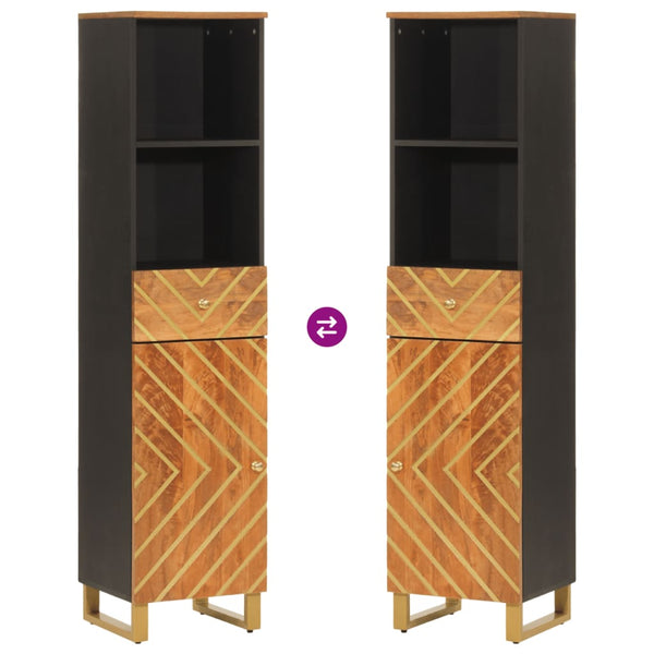 Ruskea ja musta kylpyhuonekaappi 38x33,5x160cm mangopuu