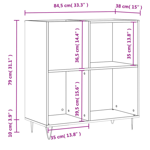 Ruskea tammi lp-levyjen säilytyskaappi 84,5x38x89cm puu